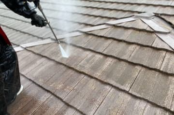モニエル瓦は、剥離が起こりやすいため、高圧洗浄できれいにスラリー層を洗います💪