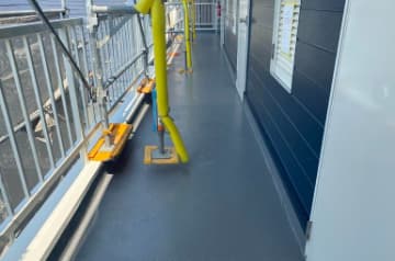通路の土間を塗装いたします😊
