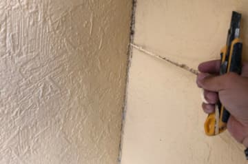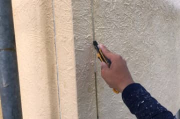 縦目地などの3面接着部分は、旧コーキングを切り取り、新たなコーキングを充填いたします😊