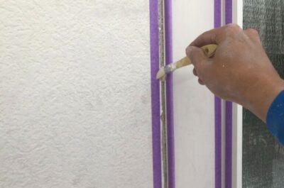 下地処理作業:壁にはみ出さないようにマスキングテープを貼ります😊