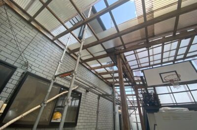 足場組み立て作業:明日組み立て作業を行いました😊カーポートや波板がある場合は数枚外して組み立てる必要があります😊
