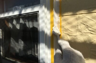 コーキング作業を行う為マスキングテープを貼っていきます😊