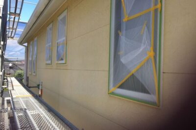 塗料で窓を汚したりしないように、綺麗に養生を行います😊