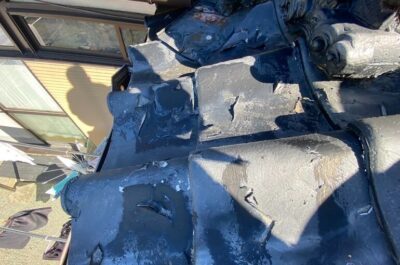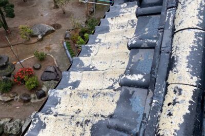 劣化がかなり進行しており、塗膜の剥離や瓦の割れなどが多数ありました。