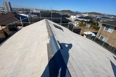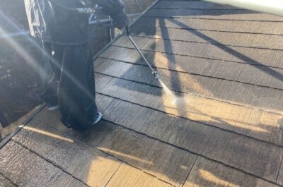 屋根は家の中でも特に劣化がひどく、高圧洗浄を行うと、素地や旧塗膜が剥がれ、白くなります。
