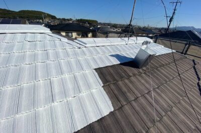 セメント瓦やコロニアル屋根材は、シーラーやフィラーとよばれる下塗り材を塗布し、塗料の密着や吸い込みを止めて仕上がりを美しくする役割があります。場合によっては下塗りを2回塗る必要があるほど傷みが激しい場合もあります。