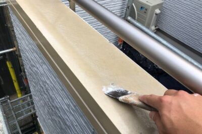 左官業の仕事のようですが、塗装前の素地を整える工程なので塗装業者が下地処理の一環として担当します。