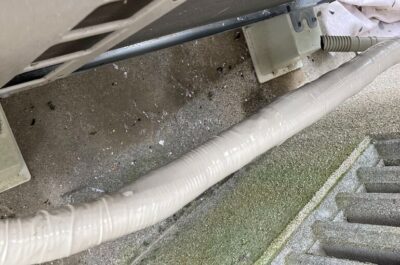 劣化していた室外機のホースを巻き直します。