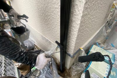ベランダ笠木はアルミ製なので塗装は行いませんが、コーキング補修を行いました。