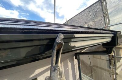 本日、雨樋や破風などの付帯部分の塗装を行いました。