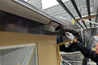 本日、雨樋などの付帯部分の塗装を行いました。