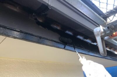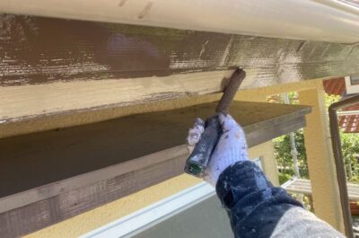 雨樋や破風板の塗装を行います。
