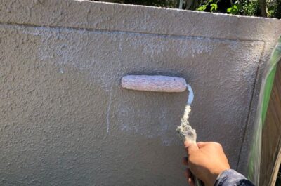 塀の下塗りを行いました。