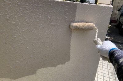 塀の上塗りを行いました。