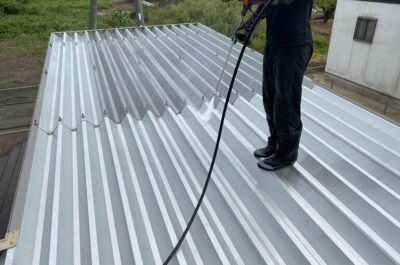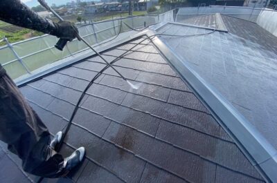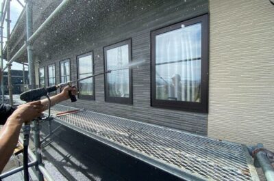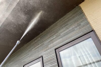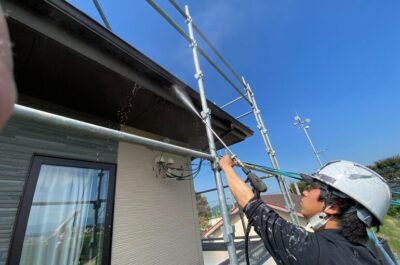 外壁や雨樋、車庫などを丁寧に洗っていきます。