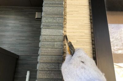 コーキングの撤去を行います。