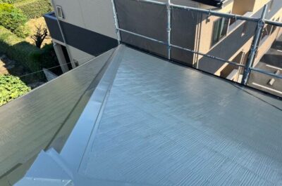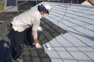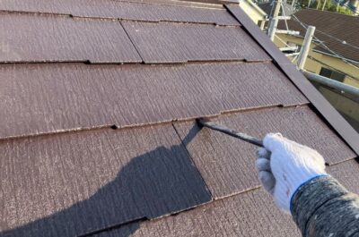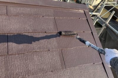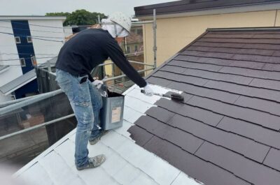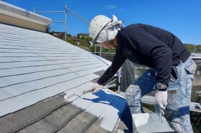 屋根の上塗りを刷毛やローラーを使って塗装していきます。