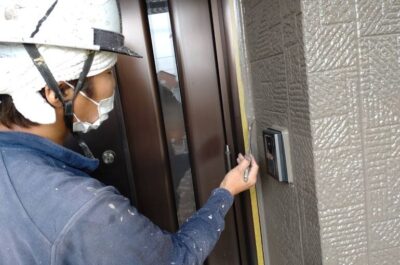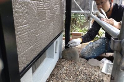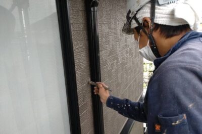 外壁の手直しや、窓に漏れている塗料を掃除します。