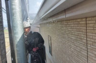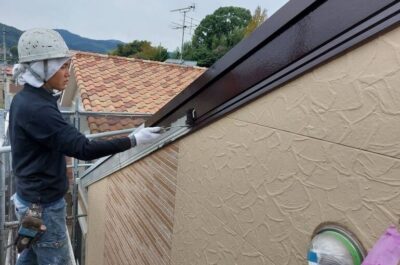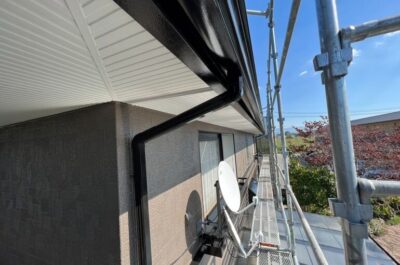 雨樋や破風の塗装を行います。