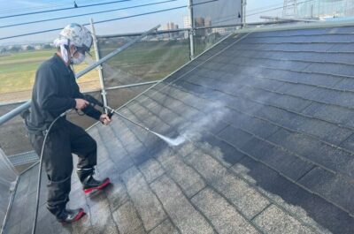 屋根を丁寧に洗っていきます。