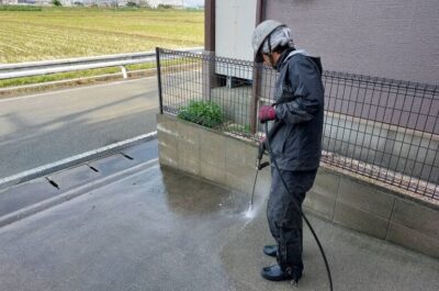 塀や土間も綺麗に洗っていきます。