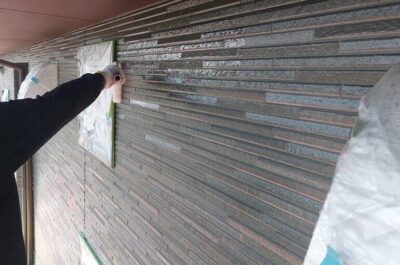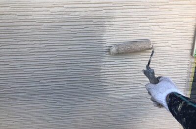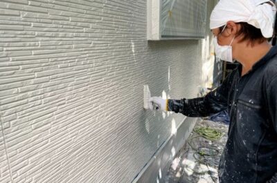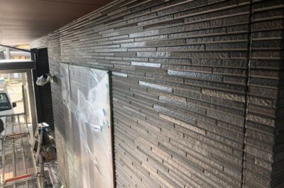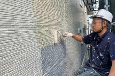 外壁の上塗りを行いました。
