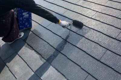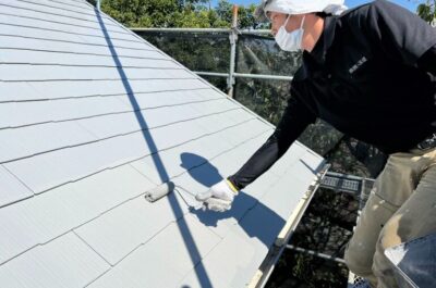 屋根の中塗りを行いました。