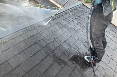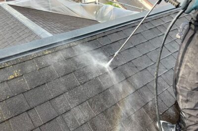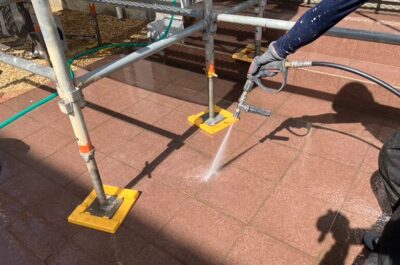 はじめに高圧洗浄を行います。