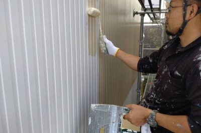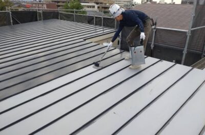 屋根の中塗りを行いました。