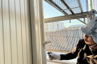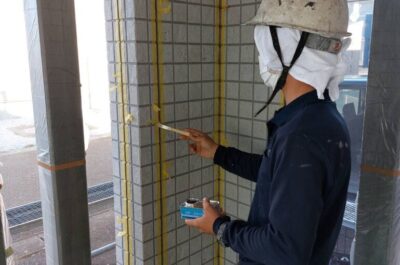 本日、コーキング部分のプライマーを塗布いたしました。