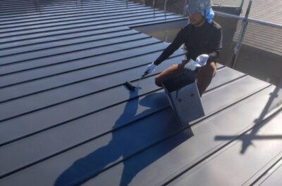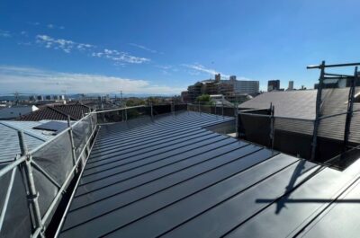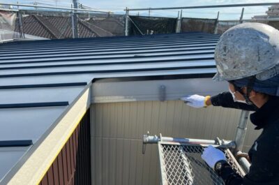 屋根の上塗りを行いました。