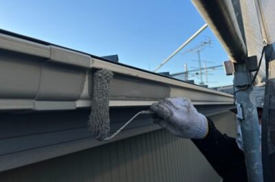 破風や雨樋を塗装していきます。