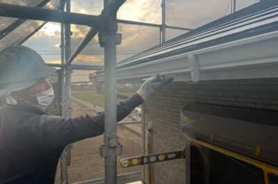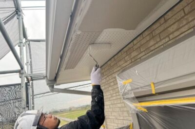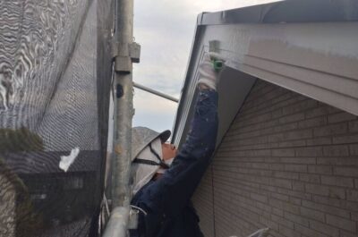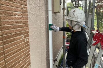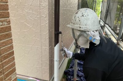 下地処理を入念に行った後、雨樋の塗装を行います。