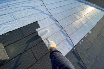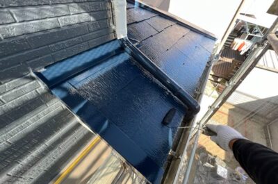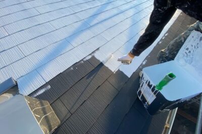 コーキングの乾き待ちがありますので、屋根の下塗りを行いました。