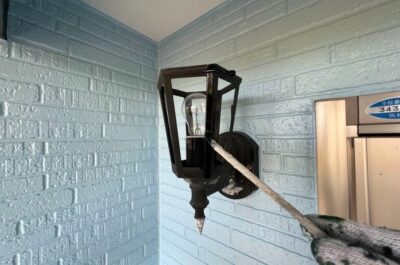ポーチライトの塗装を行います。