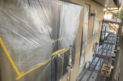 窓や土間などの塗装しない部分を養生いたします。