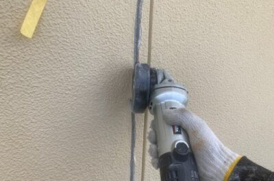 コーキングの撤去を行います。