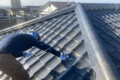 本日、屋根の中塗りを行います。