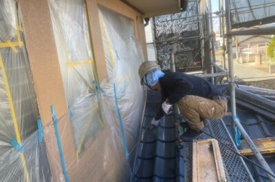 明日は引き続き、付帯部分塗装、各種手直し、屋根の上塗りなどを行います。