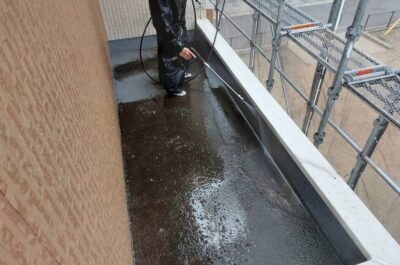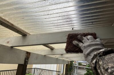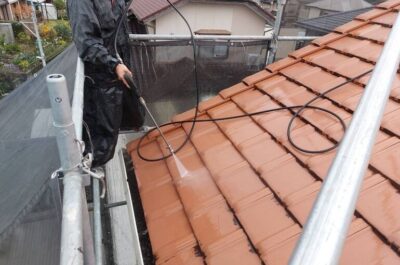 屋根や玄関タイルは塗装しませんが、高圧洗浄で綺麗に洗います。