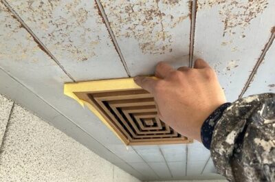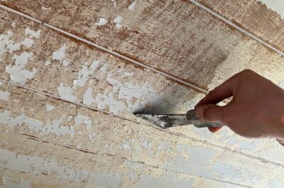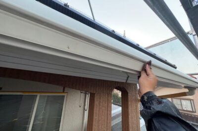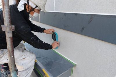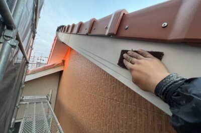 軒天の塗膜が劣化していますので、ケレンを行いました。