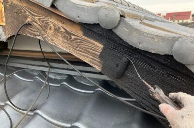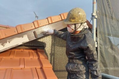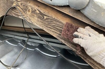 破風の下地処理を行います。