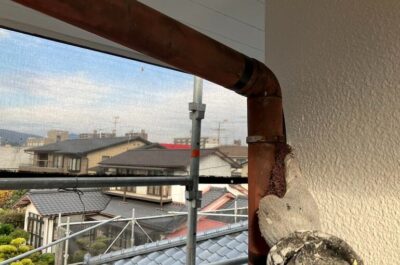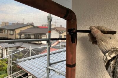 雨樋塗装を行いますので、下地処理をします。