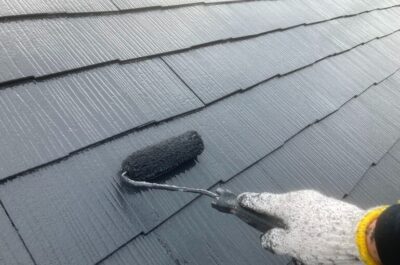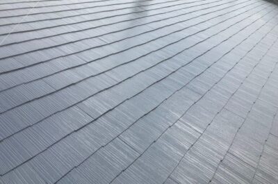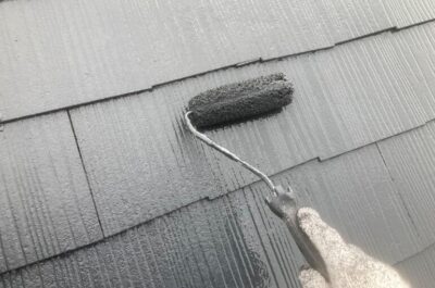 無機フッ素塗料のセミフロンスーパールーフIIで屋根の上塗りを行いました。