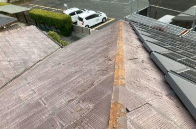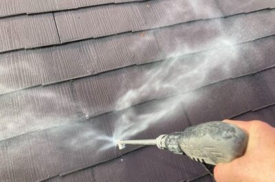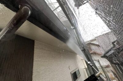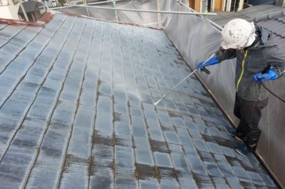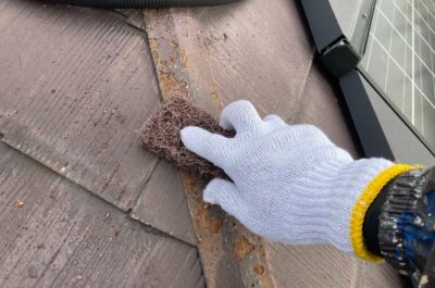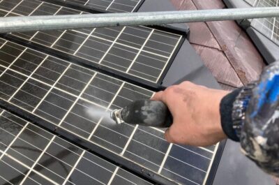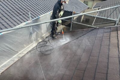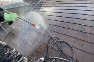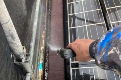 屋根や太陽光パネル、雨樋の中などを洗っていきます。