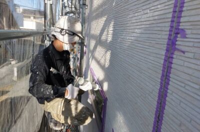コーキングを空気の入らぬよう慎重に充填していきます。