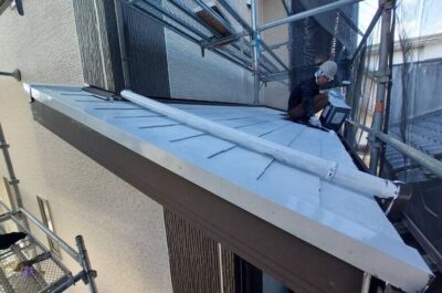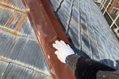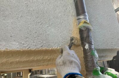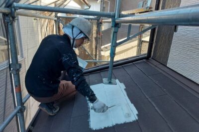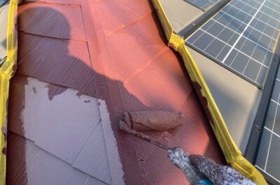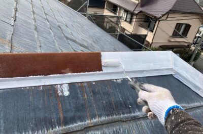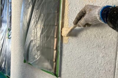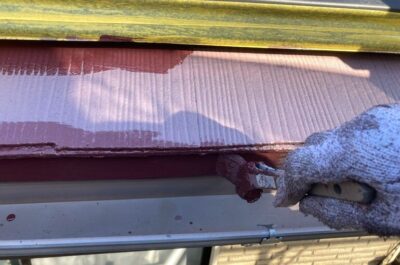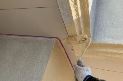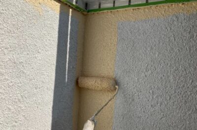 刷毛を使ってローラーでは塗りづらい部分を塗装していきます。