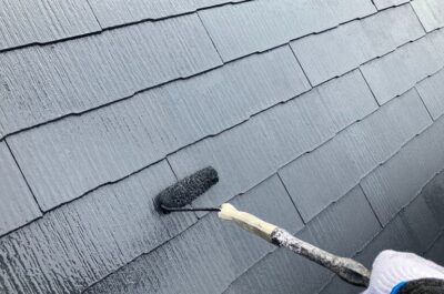 本日、屋根の上塗りを行います。