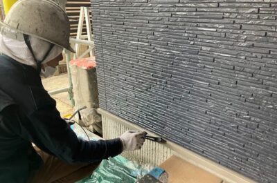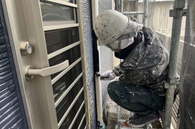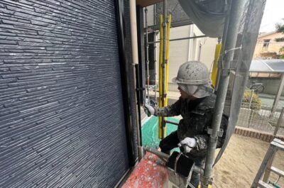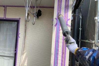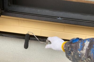 コーキングが乾くのを待つ間に付帯部分の塗装を行いました。