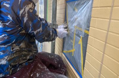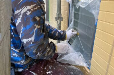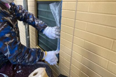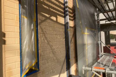 本日は、窓などを汚れさないよう、養生を行いました。